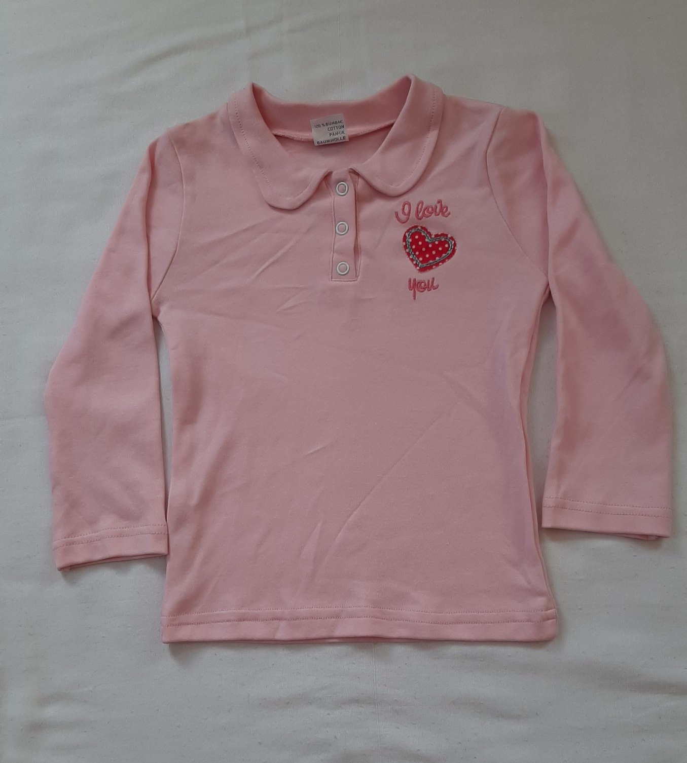 Bluzka z długim rękawem o kolorze pudrowy róż. Rozpinana na dwa guziki, co ułatwi lepsze wkładanie głowy.