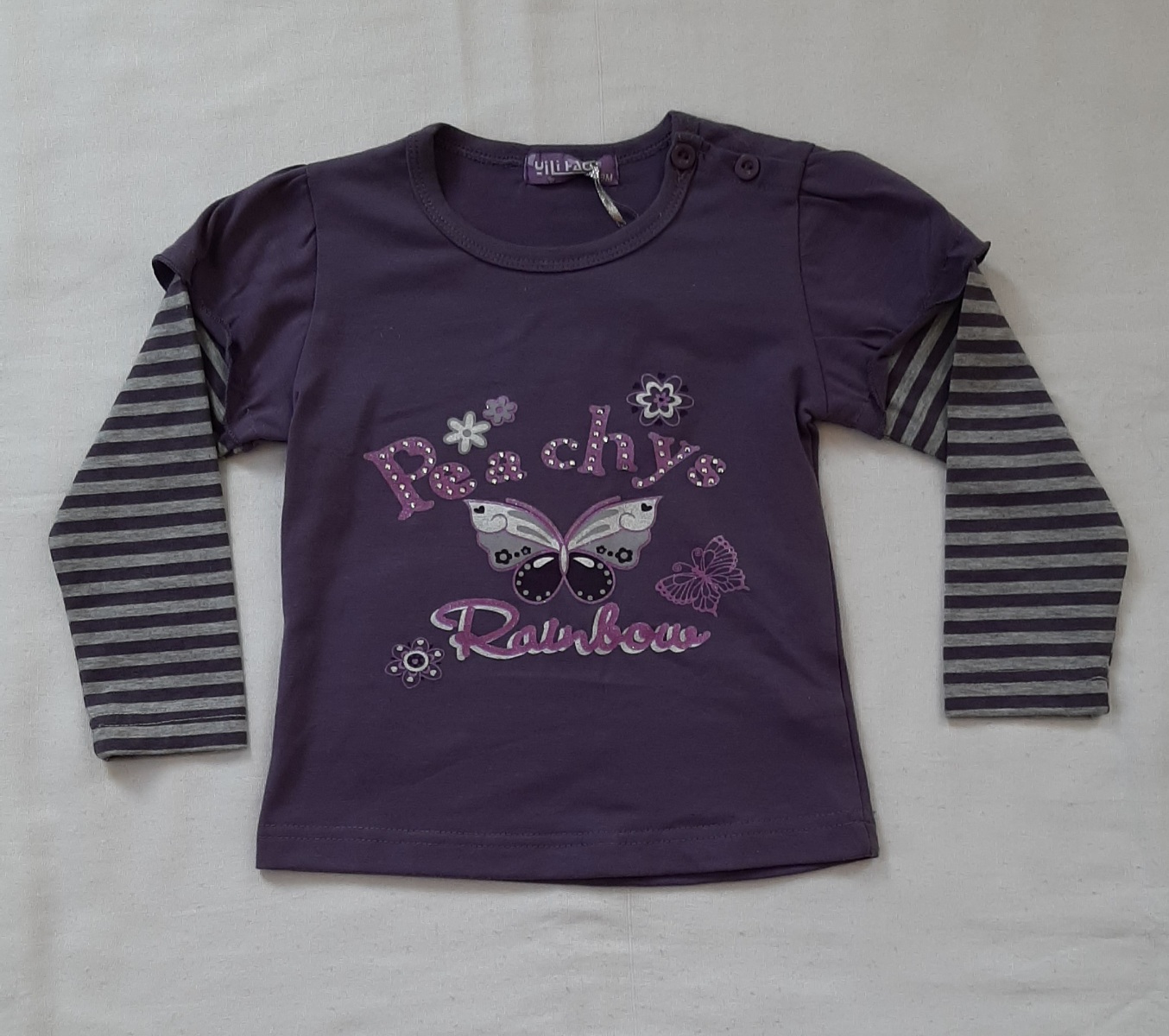 Bluzka z długim rękawem. Na ramieniu rozpięcie, ułatwi wkładanie głowy dziecka.