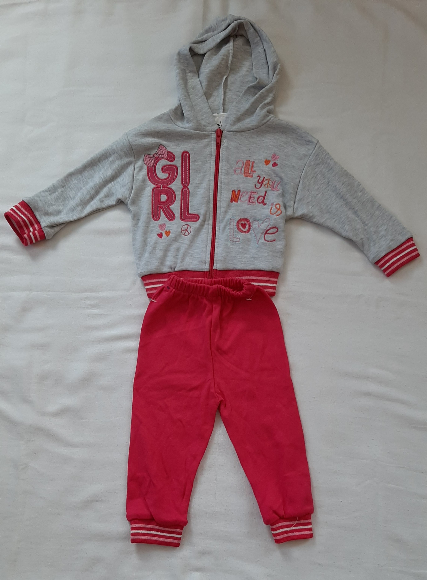 Komplet dresowy bluza + spodnie. Bluza z kapturek rozsuwana, spodnie w pasie gumka.