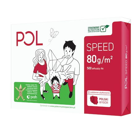 Papier A4 POLSPEED współpracuje ze wszystkimi urządzeniami drukującymi i kopiującymi. Dzięki gładkości, która zapewnia lepszą absorpcję tuszu, jest to doskonały papier do drukarki laserowej i atramentowej. Wysoka gramatura tego papieru białego (80 g/m2) zwiększa sztywność arkusza i umożliwia wysokonakładowe drukowanie bez zacięć papieru.