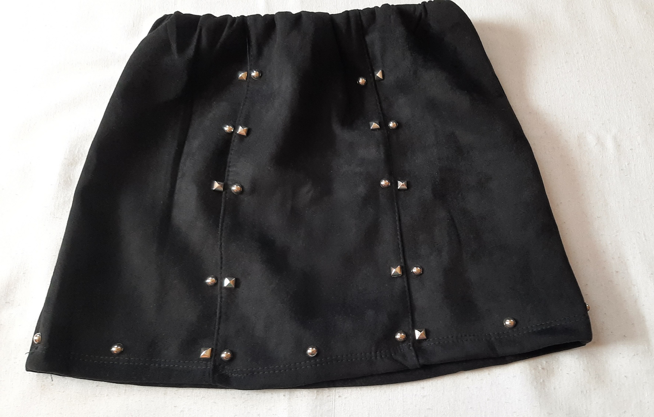 Zamszowa spódnica z metalowymi dodatkami. W pasie gumka.